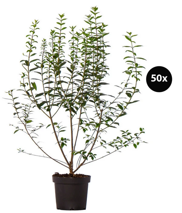 Wer nicht jahrelang warten will, bis aus ein paar kleinen Pflanzen eine hohe, dichte Hecke wird, die dann endlich neugierige Blicke aussperrt, dem empfehlen wir Ligustrum ovalifolium. Dieser asiatische Verwandte unseres heimischen Ligusters ist berühmt für seine unglaubliche Wuchsgeschwindigkeit, denn er kann locker bis zu 50 cm pro Jahr zulegen. Und das ist nicht der einzige Pluspunkt dieser zu Recht beliebten Heckenpflanze. Denn ein Ovalblättriger Liguster ist auch fantastisch unkompliziert und behält außerdem in milden Winter sein grünes Laubkleid. Das er erst im Frühjahr zum Neuaustrieb abwirft, sodass Ihre Ligusterhecke auch im Winter einen Sichtschutz bietet. Bestellen Sie deshalb gleich die 50 kräftigen Pflanzen Ovalblättriger Liguster und freuen sich jetzt schon auf eine wunderschöne dichte Hecke, deren duftende Blütenrispen im Juni eine wertvolle Bienenweide sind, während im Spätsommer ihre schwarzen Beeren bei der Vogelwelt beliebt sind!