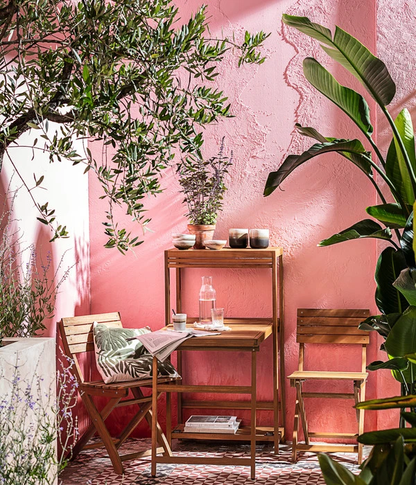 Sie lieben es, den Tag mit einem Frühstück in der Morgensonne zu beginnen? Und nach der Arbeit relaxen Sie gerne eine Weile in Ihrer grünen Oase und entspannen umgeben von bunten Blumen und üppigem Grün? Sie nehmen auch das Abendessen gerne unter freiem Himmel ein – vielleicht mit Blick auf den Sonnenuntergang? Dann brauchen Sie unbedingt das Dehner Balkon-Set Neapel. Dieses ebenso attraktive wie praktische Gartenmöbel-Set verwandelt Ihren Balkon in eine gemütliche Wohlfühl-Oase, so dass Sie sich immer ein bisschen wie im Urlaub fühlen, wenn Sie sich auf einen der beiden Stühle setzen und ein Getränk auf den Tisch stellen. Genießen Sie bald die schönen Sommertage auf Ihrem Balkon noch intensiver – mit dem Dehner Balkon-Set Neapel! Und wenn Sie den Platz auf dem Balkon anderweitig nutzen, zum Beispiel einen Liegestuhl aufstellen möchten, klappen Sie das Set einfach zusammen und stellen es beiseite.