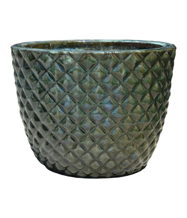 Sie suchen nach einem modernen Topf für Ihre Blumen? Der Keramik-Topf Elite von Dehner bietet Ihnen viele optische Highlights. Seine attraktive Farbglasur im Bottle-Green-Trend sticht als erstes in Auge und macht den Pflanztopf zu etwas ganz Besonderem. Hinzu kommt das dekorative Rautenmuster, das seine Oberfläche noch strukturierter und interessanter aussehen lässt. Seien Sie sich außerdem gewiss, dass Sie mit dem Elite-Topf ein echtes Unikat erhalten, das handgefertigt und damit einmalig ist. So können Sie Ihre Lieblingspflanzen perfekt in Szene setzen mit dem guten Gefühl, dass Sie ein liebevoll, handgefertigtes Unikat besitzen.