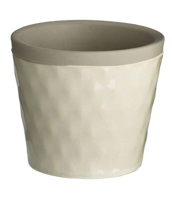 Wenn Sie ein Freund niedlicher Mini-Pflanzen wie Kakteen oder Sukkulenten sind, werden Sie den hübschen, durch seine zeitlose Eleganz bezaubernden Dehner Übertopf Ariane sofort in Ihr Herz schließen. Bietet er doch genau den Rahmen, um Ihre Pflanzenlieblinge auf stilvolle Art in ihrer Schönheit zu zeigen. Dank der dezenten Farbe macht das Töpfchen in jeder Umgebung eine gute Figur. Wo auch immer Sie ihn aufstellen, in Ihrem Wintergarten oder auf der Fensterbank, überlässt er auf einfache Weise Ihrer Zimmerpflanze den optischen Vortritt.