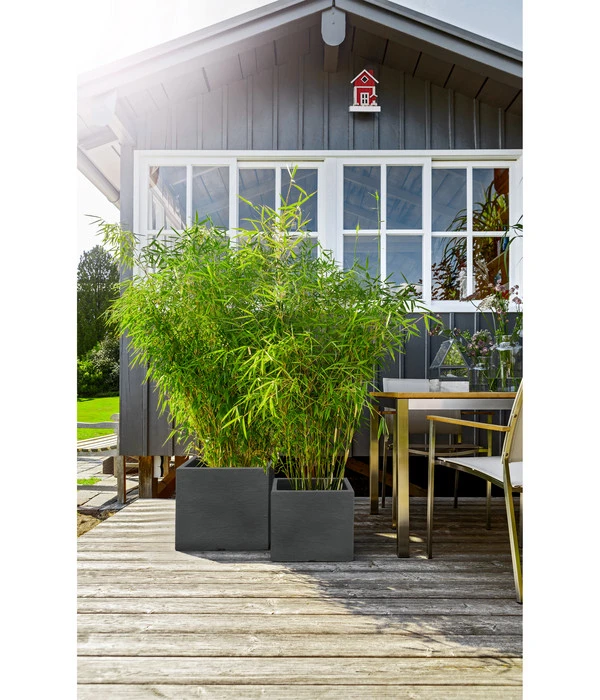 Quadratisch, edel, praktisch – die Charakterisierung passt perfekt auf diesen Blumenkübel Palermo aus Kunststoff. Die quadratische Form mit den ausgeprägten Kanten entspricht ganz dem modernen Design-Stil, ist aber zugleich so klassisch, dass sie garantiert auch in vielen Jahren noch gefällt. Edel ist die schöne Naturstein-Optik, in der sich der Pflanzkübel präsentiert. Seine raue Oberfläche wirkt, als sei er von einem Steinmetz aus echtem Schiefergestein gehauen und dann in die jetzige Form gebracht worden. Und so wirkt der Blumenkübel nicht nur von weitem, sondern auch bei näherem Hinsehen. Als ganz besonders praktisch erweist sich das Material, aus dem Blumenkübel tatsächlich ist. Er ist nämlich aus einem hochwertigen Kunststoff gefertigt, was ihn so robust im Outdoor-Leben macht. Der Pflanzkübel sieht zwar schwer aus, der Kunststoff macht ihn aber angenehm leicht, so dass Sie ihn auch einmal an einen anderen Ort tragen können. Außerdem ist er wetter- und sogar frostfest und kann das ganze Jahr draußen im Freien stehen, sofern Sie Staunässe vermeiden.