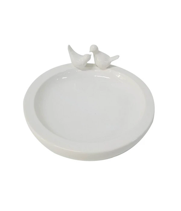 Ganz in Weiß präsentiert sich die als Schale geformte Tränke für Vögel. Sie ist – im wahrsten Sinne des Wortes – eine runde Sache. Das I-Tüpfelchen ist jedoch das Material: Das attraktive Vogelbad ist aus schlichtem Steinzeug gefertigt, das seinem Charakter nach zwischen Steingut und Porzellan liegt. Wussten Sie, dass bereits unter der Zhou-Dynastie, um 1100-250 v. Christus, in China Steinzeug hergestellt wurde? Ein Material also, das auf eine lange Tradition zurückblickt und bis heute nichts von seinem Reiz verloren hat.