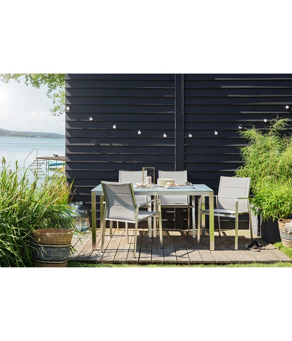 Sitzen Sie edel, bequem und äußerst hochwertig – im Dehner Stapelstuhl Nantes mit Edelstahl-Gestell