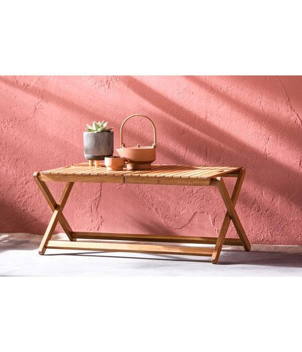 Sie wünschen sich manchmal, den sonntäglichen Nachmittagskaffee komfortabel an den Pool zu verlagern? Vielleicht würde sich auch die Lesestunde noch schöner für Sie anfühlen, könnten Sie diese auf der Terrasse oder im Garten mit einem kleinen Imbiss verbinden? Mit dem Dehner Tablett-Tisch ‚Macao‘ eröffnen sich Ihnen völlig neuen Möglichkeiten. Nutzen Sie den natürlich schönen, aus 100 % FSC-zertifiziertem Akazienholz gefertigten Tisch auch im Rahmen von Outdoor-Partys – beispielsweise zum Servieren von Speisen oder als urige Selbstbedienungs-Getränkebar! Er steht zuverlässig auf verschiedenem Untergrund und trägt auch das schwere Bowle-Gefäß oder das Bierfass mühelos. Wenn Sie das praktische Tischchen gerade nicht benötigen, können Sie es kinderleicht zusammenklappen und platzsparend verstauen.