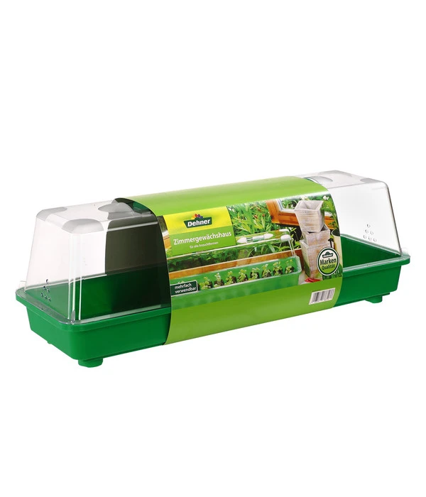 Die jungen Samen und Stecklinge finden in diesem Dehner Zimmer-Gewächshaus Alexander viel Platz, um gut gedeihen zu können. Die glasklare Haube lässt ausreichend Licht und Luft an die jungen Pflanzen und bietet gleichzeitig den richtigen Schutz. Im Boden sorgen Vertiefungen und Rinnen für die bestmögliche Wasserverteilung. Somit lässt sich das Zimmer-Gewächshaus Alexander von Dehner ideal für den Einsatz von Kokos-Quelltabletten nutzen. Diese bestehen zu 100 Prozent aus Kokossubstrat, sind frei von Bakterien und Schädlingen und damit perfekt für die Anzucht geeignet. Auch die gern genutzten, torffreien Anzuchttöpfchen lassen sich mit diesem Zimmergewächshaus außerordentlich gut kombinieren. Das Zimmer-Gewächshaus Alexander garantiert Ihnen die bewährte Dehner-Markenqualität, auf die Sie und Ihre Pflanzen sich das ganze Jahr verlassen können.