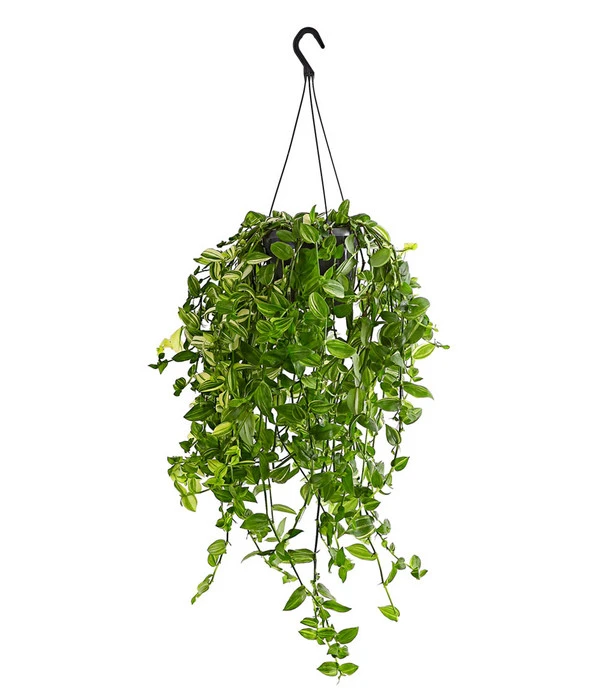 Das ist aber mal ein Grünton! Nicht grasgrün oder gar dunkelgrün, sondern so strahlend gelbgrün wie der frische Laubaustrieb in der Natur an einem schönen Maimorgen! Da wird Ihnen jeden Tag von neuem das Herz aufgehen und es könnte ein schönes Ritual werden, sich jeden Morgen mit einem Blick auf Ihre Dreimasterblume ‘Yellow Hill‘ für die Herausforderungen des Tages zu stärken! Doch das Blattwerk dieser dekorativen Zimmerpflanze ist nicht einfach nur gelbgrün: die spitzovalen Blätter sind mit hellgelben Streifen verziert. Und mit etwas Glück entdecken Sie im Jahresverlauf immer mal wieder eine der reizvollen Blüten, mit denen uns die Pflanze sporadisch überrascht. Setzen Sie die Dreimasterblume ‘Yellow Hill‘ gleich in eine hübsche Ampel und genießen Sie den Anblick der elegant überhängenden, maigrünen Triebe!
