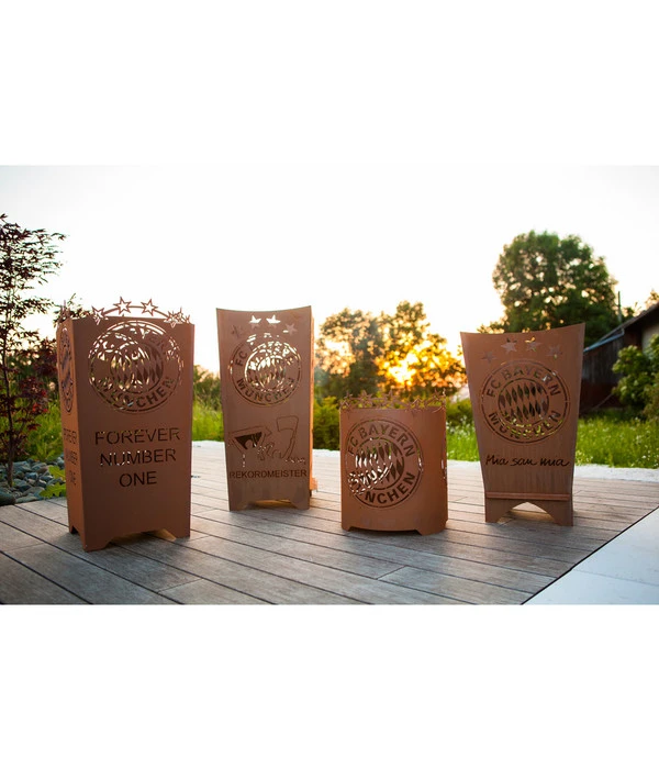 „Mia san Mia“ – diese bayerische Redewendung symbolisiert nicht nur bayerisches Lebensgefühl, sondern ist seit einiger Zeit auch das offizielle Motto des FC Bayern München. Denn kaum ein Spruch drückt den Stolz auf den Rekordhalter treffender aus, der ins Hochdeutsche übersetzt „Wir sind Wir“ bedeutet. Zusammen mit einem riesigen FC Bayern München Logo schmückt dieses Motto jetzt auch den neuen, coolen FCB Feuerkorb. Es handelt sich dabei um einen offiziellen Feuerkorb des FC Bayern München, der aus stabilem, 2mm dicken, natürlich gerostetem, Stahl besteht und in Bayern hergestellt wurde. Diese originelle, offene Feuerstelle wird bei vielen Gelegenheiten der Hingucker in Ihrem Garten werden, der schöne Sommerabende mit seiner einzigartigen Ausstrahlung bereichert.