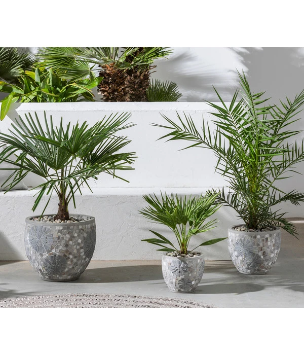 Exotische Schönheiten müssen keine Mimosen sein. Mit der Chinesischen Hanfpalme können wir Ihnen eine der robustesten und frosthärtesten Palmen weltweit vorstellen. Heimisch ist die Chinesische Hanfpalme vom Himalaya im Norden Indiens bis Nordthailand und China. In Europa begegnet man ihr oft in mediterranen Gärten, in Meran, dem Gardasee, im Tessin und in Südengland. Je nach Region kann diese Palmenschönheit auch bei uns auf reizvolle Weise Gärten und Terrassen mit ihrem exotischen Flair verzaubern. Mit ihrer charakteristischen Optik – den fächerartigen Blättern, die vom Kopf aus nach oben austreiben und sich im zunehmenden Alter senken – braucht sie ausreichend Platz, um sich gut entfalten zu können. Sie kann in Kübeln kultiviert, in milden Regionen aber auch in den Garten gepflanzt werden.