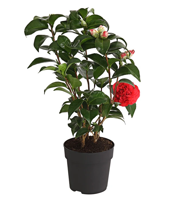 Der attraktive Blütenstrauch ist durchaus als Diva bekannt, die keine Veränderungen mag und im Ernstfall sogar Knospen abwirft. Wenn Sie Ihrer Kamelie jedoch einen hellen, aber nicht vollsonnigen Standort in einem Wintergarten, einem kühlen Raum oder einem hellen Treppenhaus bieten und durch regelmäßiges Besprühen für dauerhaft hohe Luftfeuchtigkeit sorgen, fühlt sie sich rundum wohl. Verwenden Sie zum Gießen und Sprühen stets kalkfreies Wasser und gießen Sie in der Vegetationszeit, direkt nach der Blüte bis Ende Juli, regelmäßig. Gedüngt wird mit Hortensiendünger, da Kamelien ähnliche Nährstoffansprüche wie Hortensien haben. Den Sommer verbringt sie gerne draußen, bei deutlich reduzierten Wassergaben und ohne Düngung – das regt die Knospenbildung an. Topfen Sie bei Bedarf direkt nach der Blüte um und verwenden Sie ein hochwertiges, saures Substrat wie Rhododendronerde.