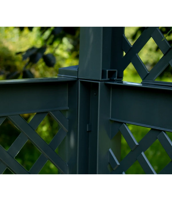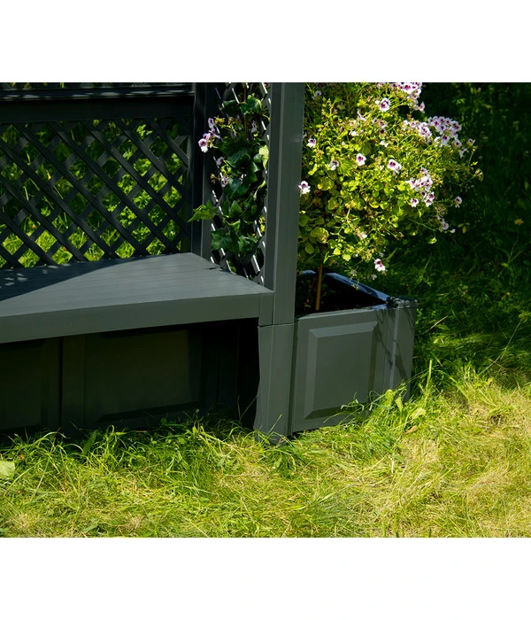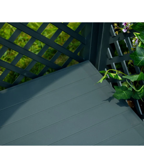 Lassen Sie sich von Ihrem eigenen Garten verzaubern und beginnen Sie zu träumen. Mit der KHW Kunststoff-Gartenbank Amsterdam haben Sie den idealen Ort um die Gedanken schweifen zu lassen und sich dem Moment hinzugeben. Dieser formschöne, nostalgische 2-Sitzer von KHW-Geschwenda verkörpert ein sehr klassisches Design und eine kindliche Verspieltheit. Die schicke Sitzgelegenheit für Ihren Garten verfügt über einen Rosenbogen und zwei seitliche Pflanzkästen, in denen Sie Ihre Lieblingsgewächse gedeihen lassen können. Die KHW Kunststoff-Gartenbank Amsterdam ist aufgrund ihrer hochwertigen Verarbeitung nicht nur stabil und wetterfest, sie ist auch noch farbecht und leicht zu reinigen. Die Abmessungen für dieses schöne Gartenmobiliar betragen B 174 x T 49 x H 207 cm. Sie erhalten die KHW Kunststoff-Gartenbank Amsterdam in Einzelteilen geliefert, jedoch ist eine einfache Montage ohne zusätzliches Werkzeug möglich.