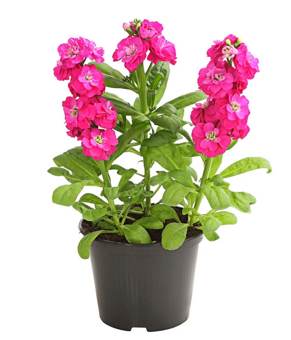 Früher fehlte sie in keinem Garten und auch heute erfreut sich die bezaubernde Sommerblume großer Beliebtheit und schmückt Beete, Rabatten, Blumenkübel und Balkonkästen. Neben den reizvollen Blüten, die sich in verschiedenen, leuchtenden Sommerfarben präsentieren, ist die Levkoje berühmt für den intensiven Duft, mit dem sie vor allem in den Abendstunden Ihren Garten bereichern wird. Ihre eigentliche Heimat ist der milde Mittelmeerraum, die zweijährige Beet- und Balkonblume ist aber auch in Asien sowie in Ostafrika bekannt. Wenn Hobbygärtner die Levkojen-Jungpflanzen zum ersten Mal im Frühjahr in die Beete oder Kübel setzen, ahnen sie noch nicht, welche fantastische Leuchtkraft sich in den zarten Blütenknospen versteckt, die dann vom Mai bis in den September den Garten verzaubern werden. Spätestens dann hat jeder sein Herz an die Levkoje verloren. Und wird hocherfreut sein zu erfahren, dass die Levkojen auch als Schnittblume in der Vase gut halten und beschwingte Sommerlaune auch im Wohnambiente verbreiten.