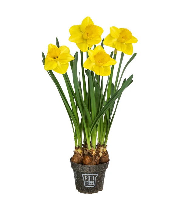Osterglocke, Trompeten-Narzisse, Märzenbecher, Falscher Narcissus – Narzissen haben viele Namen und jeder rückt eine andere der vielen guten Eigenschaften dieser Pflanzen in den Mittelpunkt. Da sind die glockenähnlichen Blüten, die bei der Narzisse ‘Lucky Number‘ im Pottburri®-Topf besonders imposant sind; da ist aber auch die Blütezeit im März und April, sodass die Blüten oft ein schöner Schmuck auf der Ostertafel sind. Kein Wunder, dass Narzissen zu den beliebtesten Frühlingsblühern gehören, auf die auch Sie nicht verzichten sollten. Zumal die Zwiebelpflanze an vielen Stellen für Frühlings-Flair sorgen kann: im Gartenbeet, aber auch in hübschen Schalen und Töpfen im Haus, auf dem Balkon oder der Terrasse. Lassen Sie sich von der Narzisse ‘Lucky Number‘ im Pottburri®-Topf in Frühlingsstimmung versetzen – vielleicht erst im Haus und nächstes Jahr im Garten!
