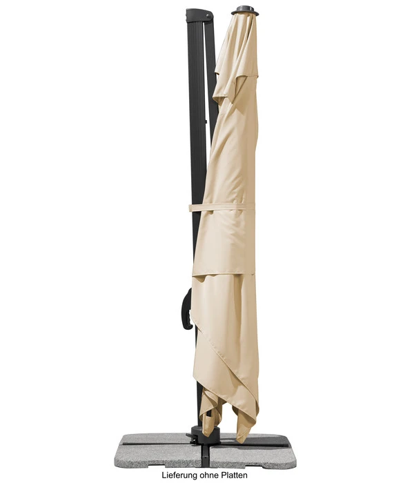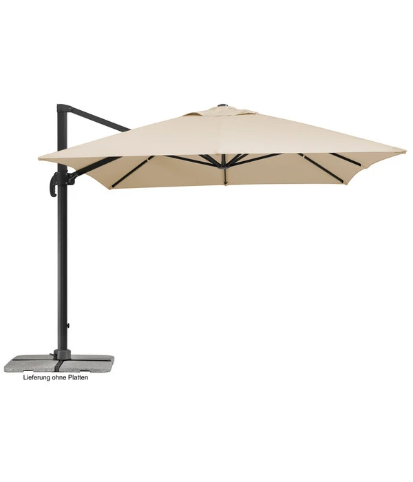 Schneider präsentiert Ihnen mit diesem Modell einen Schirm, der erstklassigen UV-Schutz 50+ für Sie bietet. Aufgrund seiner hervorragenden Konstruktion mit einem Drehteller samt Fußpedal können Sie Ihren neuen Allrounder um 360° drehen und somit immer die perfekte Position einstellen. Während die Bespannung aus pflegeleichtem Polyester besteht und Ihnen eine bequeme Handwäsche ermöglicht, punktet das Gestell aus Aluminium mit großer Robustheit und einem festen Stand. Nicht zuletzt dürfen Sie sich auf einen trendig designten Schirm im zeitgemäßen Look freuen, der den Garten auch optisch bereichert und sich ohne Probleme in bestehende Arrangements einfügt. Überzeugen Sie sich selbst vom Ampelschirm Rhodos Grande von Schneider, dessen Lieferumfang eine Schutzhülle und einen Plattenständer umfasst.