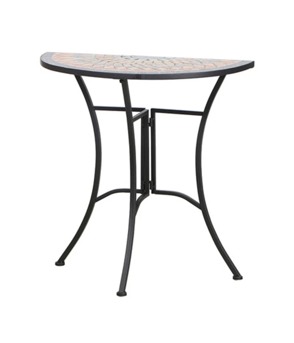 Ein pulverbeschichtetes Stahlgestell und eine Tischplatte in schöner Mosaikoptik machen den pflegeleichten, halbrunden Anstelltisch Prato von Siena Garden zu einem echten Blickfang. Der Tisch mit drei stabilen Standbeinen findet an einer Mauer oder Wand seinen Platz und besticht durch seine außergewöhnliche Form. Ansprechendes Design und Funktionalität sind so optimal kombiniert.