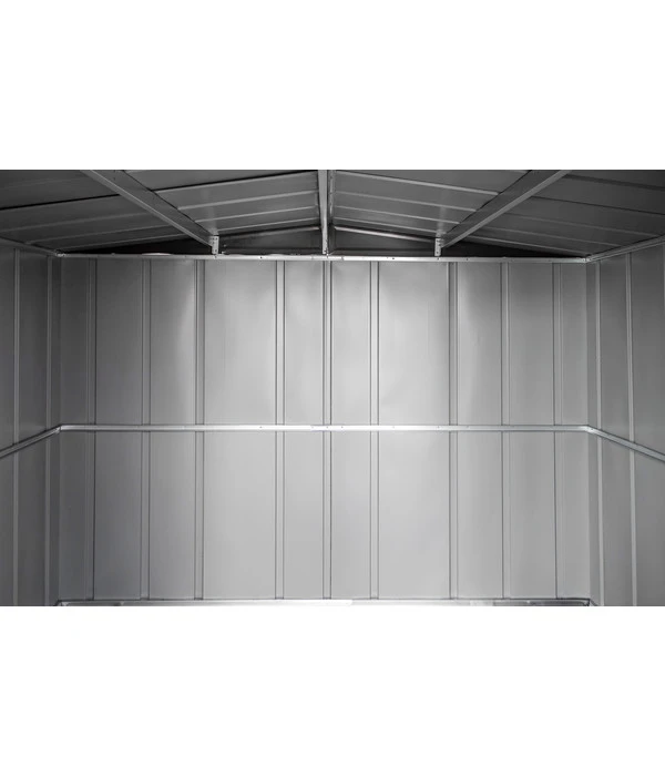 Das Gerätehaus von Spacemaker besticht mit seinem modernen, klassischen und pflegeleichten Design. Seine robuste Konstruktion punktet darüber hinaus mit dem elektrolytisch verzinkten Stahlblech, aus dem sie gefertigt ist. Die innenlaufende Schiebetür garantiert Ihnen noch mehr Raum im Inneren Ihres Schuppens, dadurch benötigen Sie keinen zusätzlichen Platz nach außen zum Öffnen der Tür. Sichern Sie sich dieses erstklassige Produkt und überzeugen Sie sich selbst vom Metallgerätehaus Woodlake aus dem Hause Spacemaker.