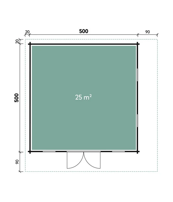 25 m², 70 mm Wandbohlen, Pultdach, Isolierglas