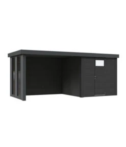 Manch einer sucht einfach nach einem Gerätehaus und einem Unterstand, aber Sie wollen mehr, Sie wollen ein Gerätehaus mit Design-Anspruch und Sie wünschen sich Entspannung, Freizeitspaß und Raum für Ihre Ideen. Wünsche, die Ihnen ein Wolff Finnhaus Metallgerätehaus Eleganto 2424, inkl. Lounge links gerne erfüllt. Während das kubische Gerätehaus hinter seiner perfekt in die Außenwandgestaltung integrierten Tür viel Raum für Ihre Gartenhelfer, Gartenwerkzeuge sowie Polsterauflagen und Co bietet, verspricht der nach rechts angeschlossene Loungebereich wahren Freizeitgenuss. Natürlich können Sie dort Ihre Fahrräder unterstellen. Mit zwei Loungeliegen, köstlichen Drinks und einem spannenden Buch lebt es sich dort jedoch wie im Wellness-Hotel und Sie sind geschützt vor zu starker Sonneneinstrahlung oder einem Regenguss. Dabei fällt Ihr Blick nach vorne vielleicht auf Ihren Pool und durch die bodentiefen Fenster an der Seite in Ihren üppig blühenden Garten. Oder stellen Sie dort lieber Ihre Gartensitzgruppe für geselliges Runden auf? Bauen Sie einfach bald Ihr Wolff Finnhaus Metallgerätehaus Eleganto 2424, inkl. Lounge links in Ihrem Garten auf und dann nutzen Sie es nach Ihren Wünschen!